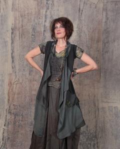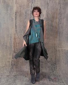 long open silk crepe patchwork vest in grayish pine green