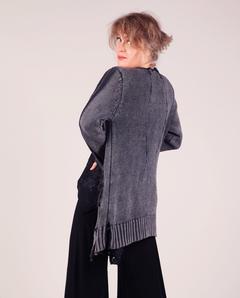 'gray to black' sweater weight knit cardigan