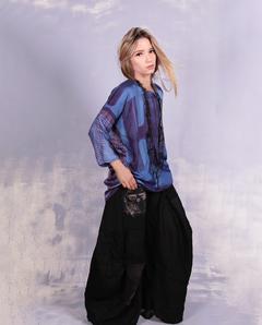 'geometry of the blue spectrum' weightless silk blouse