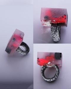 'dreaming of poppies' bold art ring in black and red