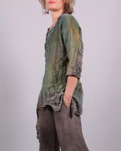 'take my garden with me' sheer Belgian flax distressed painted layering tunic