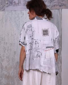 black and white patchwork asymmetrical layering top