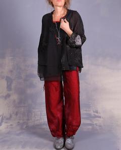 'accented in scarlet' straight leg silk pants
