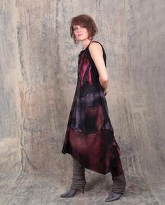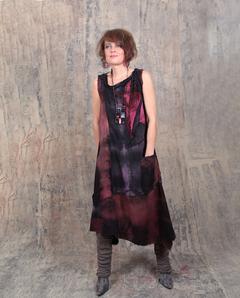 loose-fitting asymmetric hand-painted patchwork midi dress