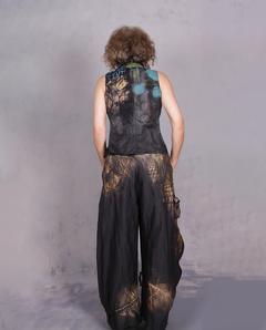 'midnight at noon' detailed distressed hand-painted cargo-style pants