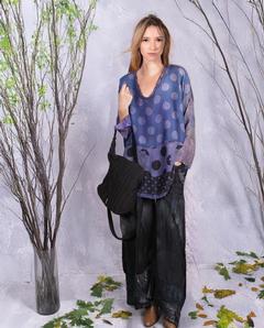 'daisies and polka dots' vintage silks distressed blouse