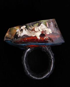 'inner fire' hand-carved gem shape art ring