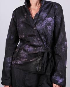 'it's a wrap' one size adjustable black and purple wrap top/jacket