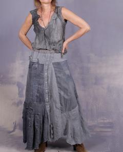 'fully neutral' mixed linens detailed a-line maxi skirt