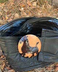 'no need to hold the horses' wide lambskin black belt with enamel vintage buckle