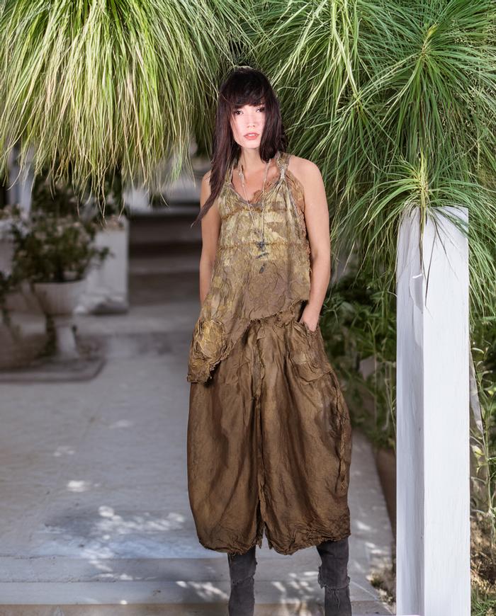 'gradually melting caramel' hand-painted sculptural baggy pants