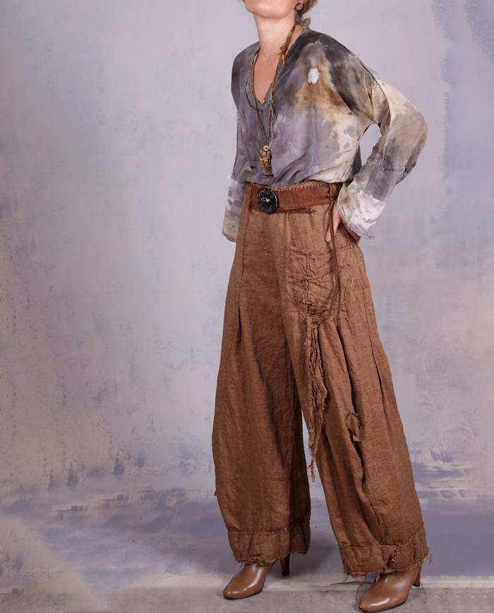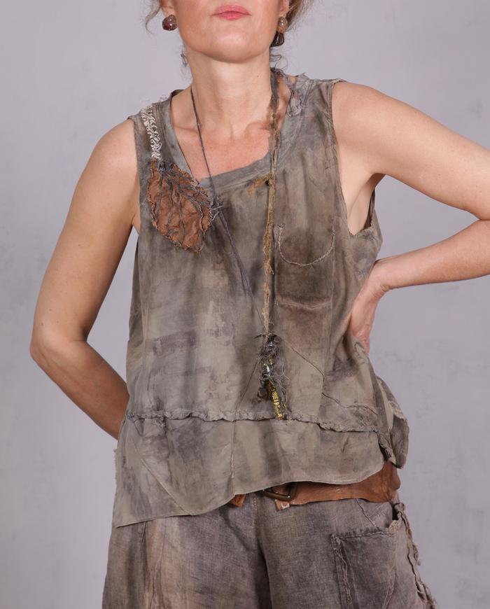 'mint and spice' layered distressed linen blouse