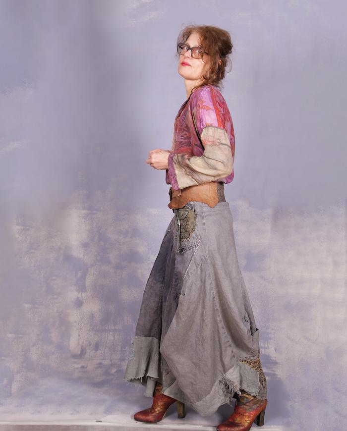 'mixing all the lines' mixed fabrics art blouse