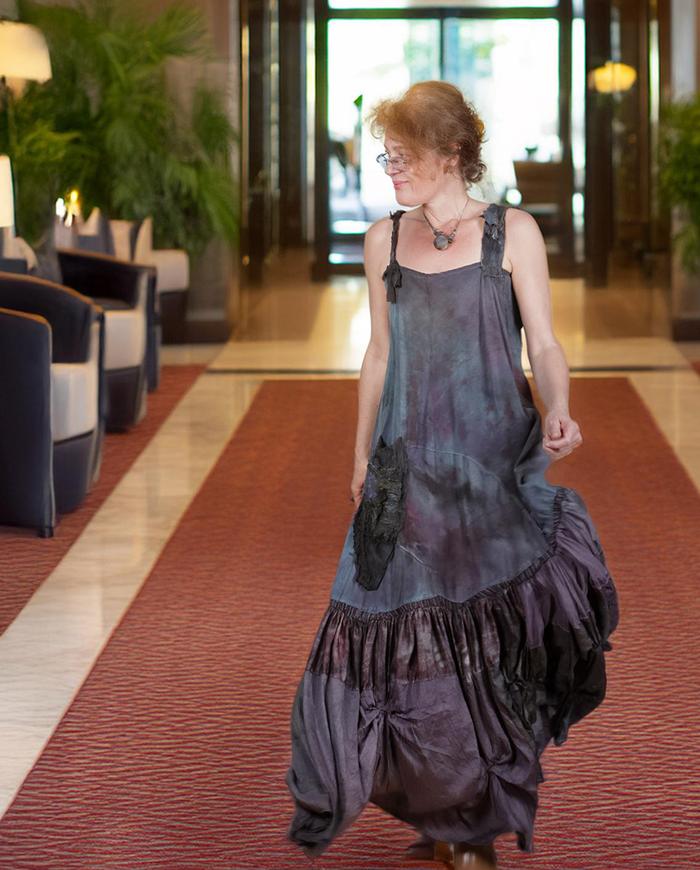 'a playful color game' silk crepe artisanal maxi dress
