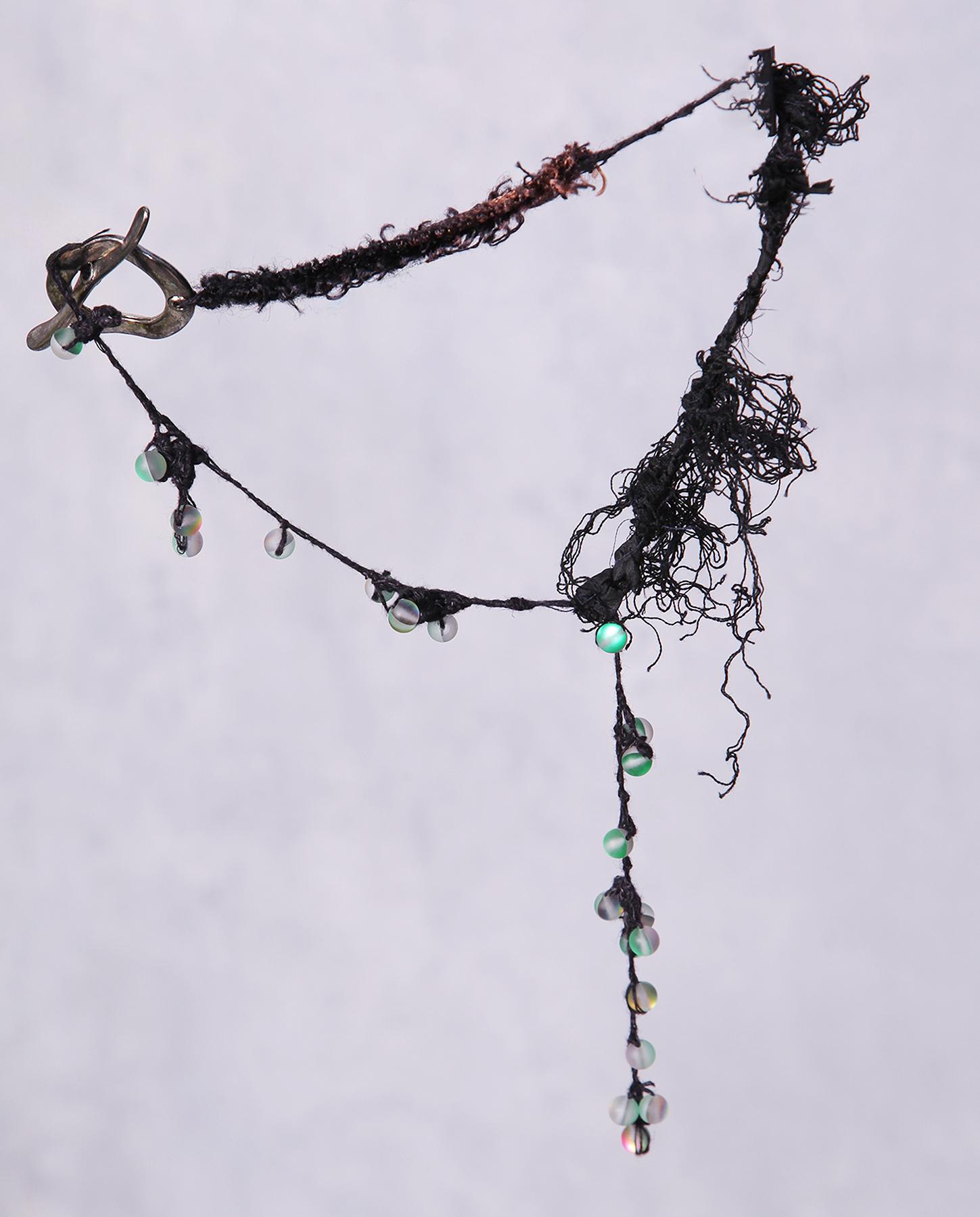 Toggle clasp, beads, fibers.