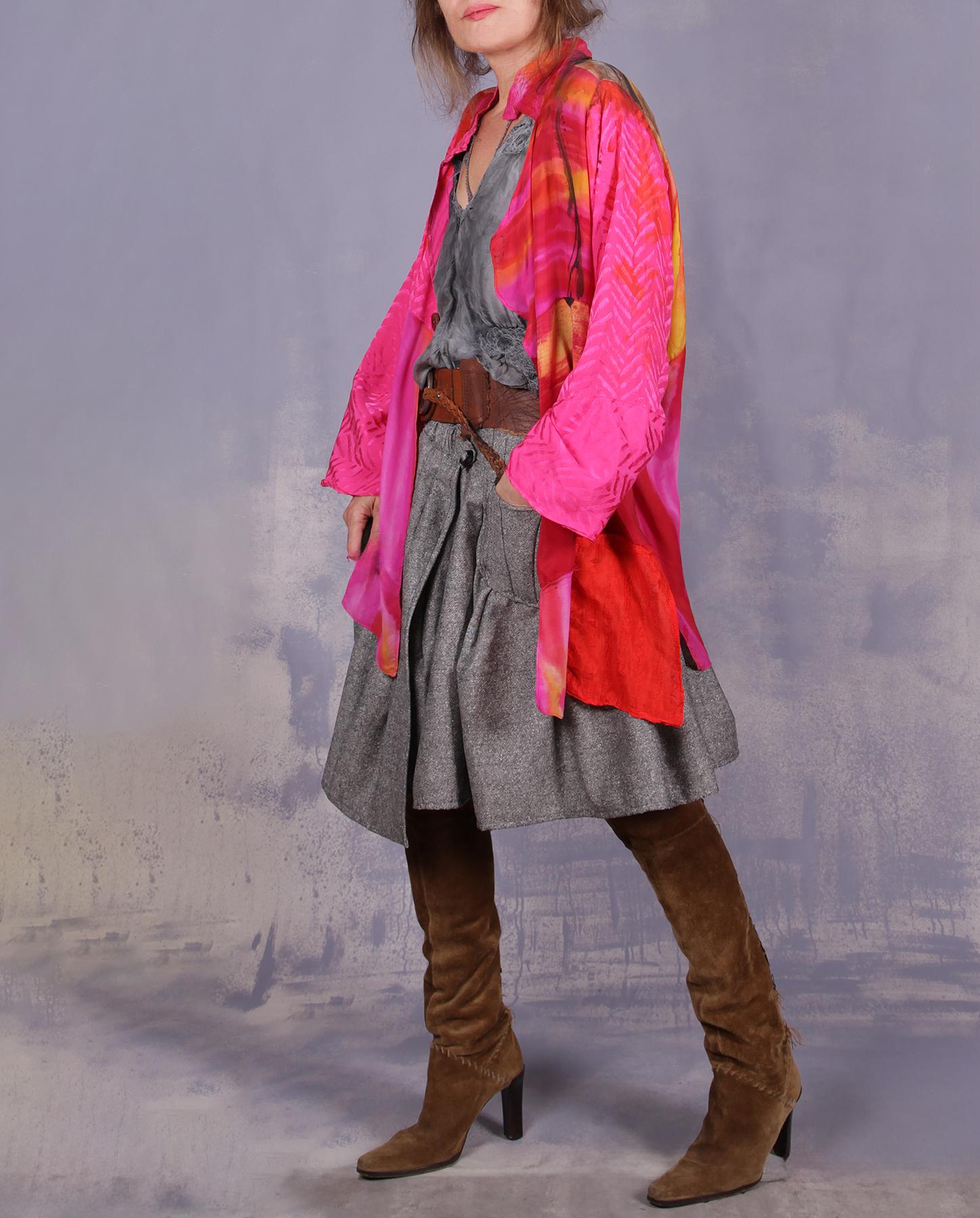 Note: Each piece is available only in the size mentioned, but modifications to change the fit are always possible (longer, shorter, smaller, roomier, etc.), often with just button repositioning and often at no extra charge, so please ask.