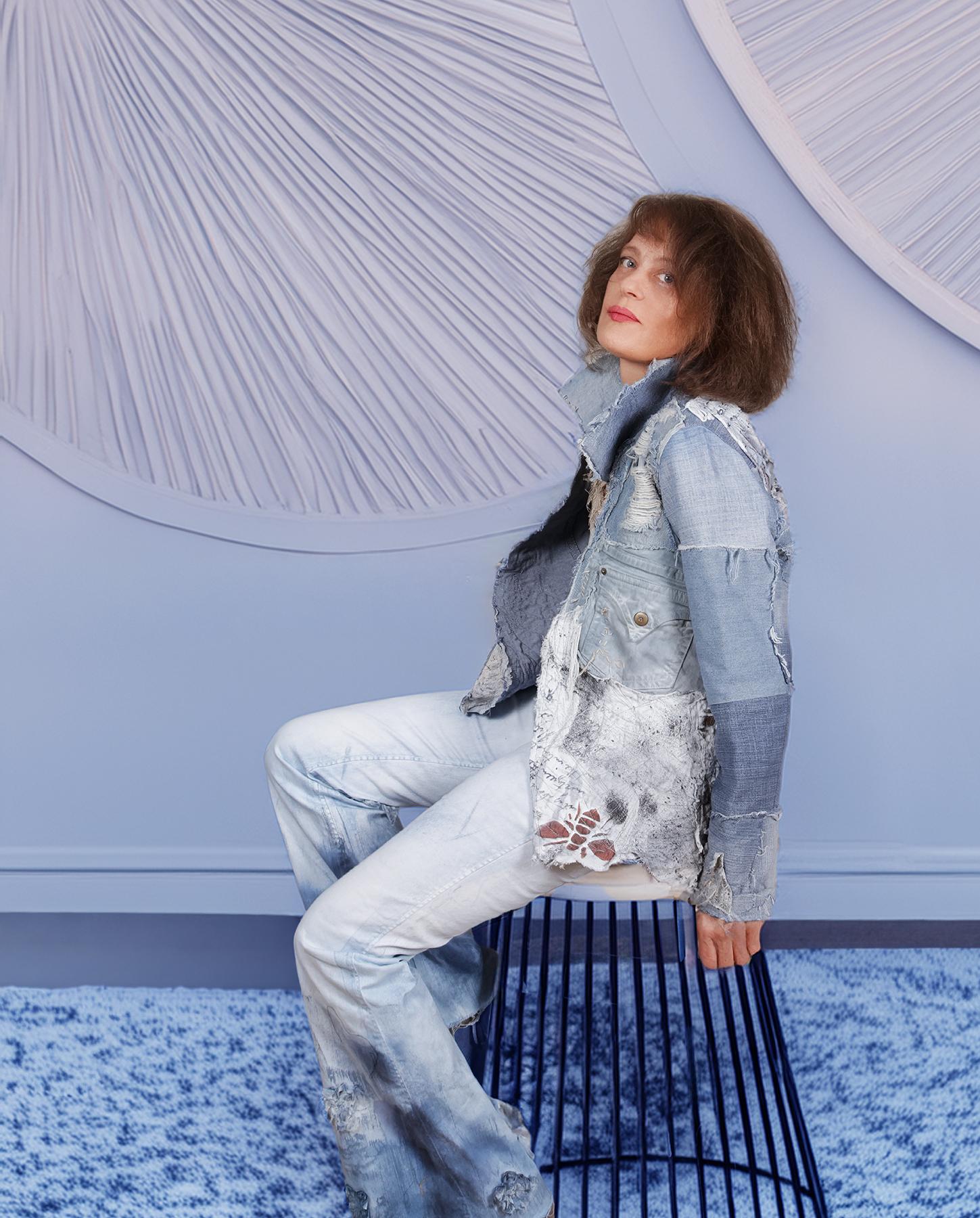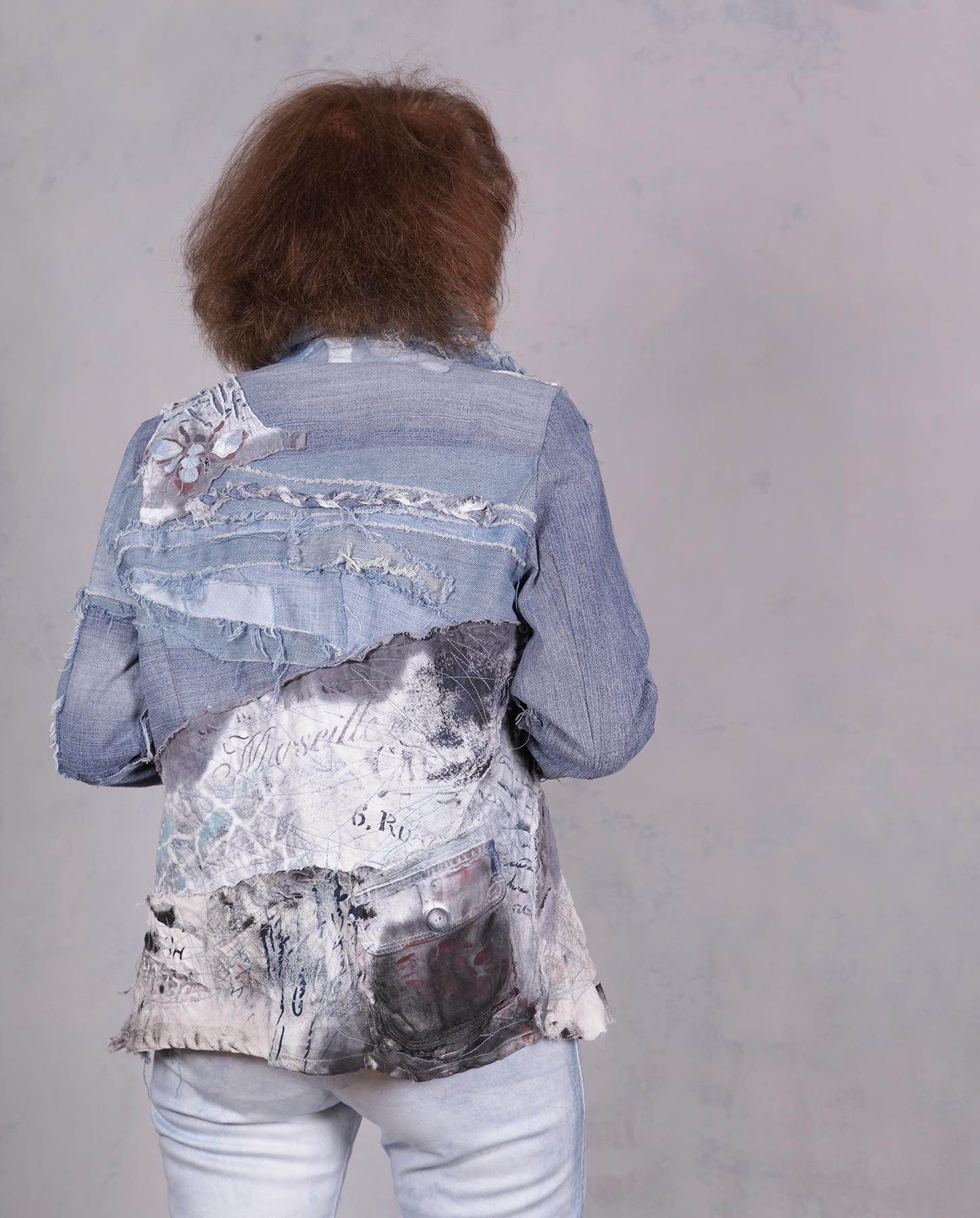 Who doesn't like denim - there is a reason it has been a staple since it was invented. This piece isn't just denim—it’s a canvas for modern artistry, with a symphony of hand-worked detail, pieced together from vintage denim and accented with expressive, mixed-media added texture throughout. From the delicate overlays to the bold honeybee hand-painted graphic and intricate tonal stitching, every inch reveals the hours of meticulous artisanship. Designed for the modern woman who refuses to sacrifice ease for edge, the fabric offers a surprising, comfortable stretch that moves with you throughout the day. Its silhouette is intentionally versatile: a contemporary, open-front design that feels as light as a cardigan but is as structured as a blazer. Unusual tactile accents, such as the frayed, "deconstructed" lapels and the repurposed pocket, give it a raw, avant-garde spirit. Whether you’re throwing it over a simple tee for a gallery hop or layering it over a sleek dress for a night out, this piece is the ultimate high-style hybrid. It is a one-of-a-kind statement that proves "distressed" can be incredibly sophisticated. If you need a closure, it can be put in upon request. Product code: Y9761