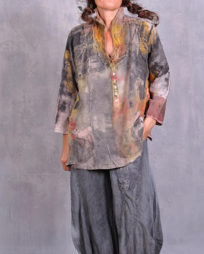 'gone with the wind' belgian linen gauze hand-painted tunic