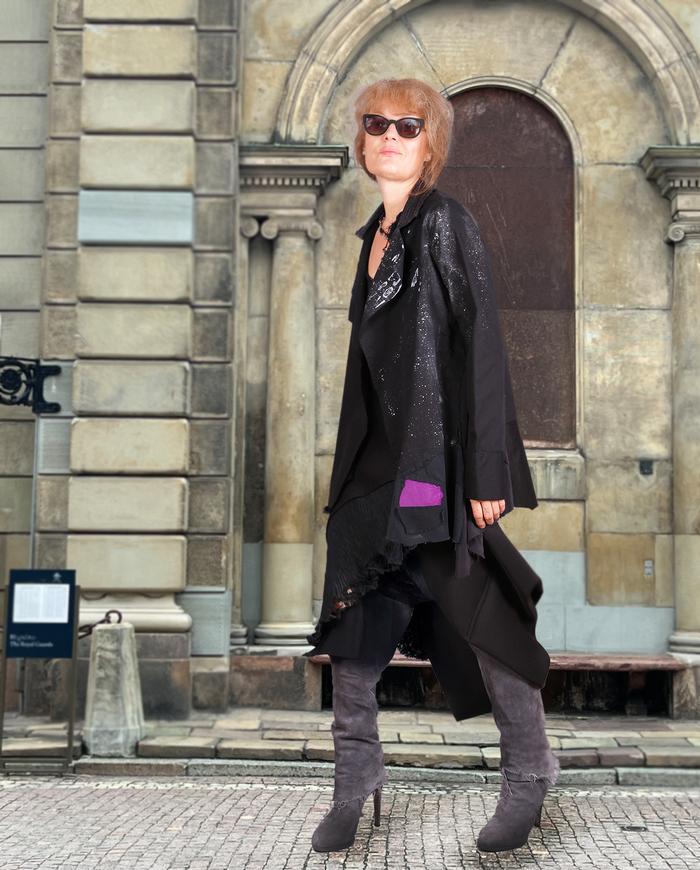 'daily runway-ready' one-size mixed fabrics jacket