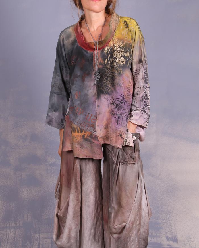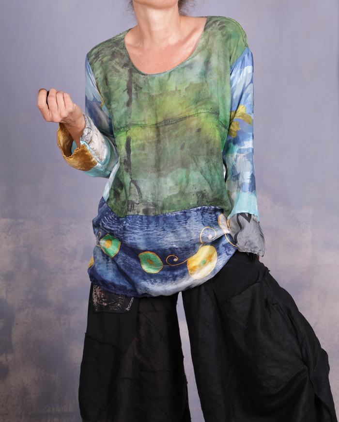 flowy mixed silks hand-painted tunic